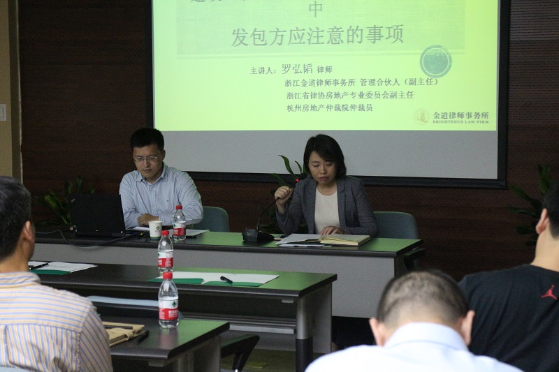 10月21日,為貫徹落實(shí)國資監(jiān)管要求,進(jìn)一步加強(qiáng)建設(shè)工程項(xiàng)目管理,推進(jìn)科學(xué)決策,提高各單位建設(shè)工程項(xiàng)目招投標(biāo)工作質(zhì)量,保證《浙江省手工業(yè)合作社聯(lián)合社建設(shè)工程項(xiàng)目招投標(biāo)管理暫行辦法》的順利實(shí)施,集團(tuán)公司邀請杭州市建設(shè)工程質(zhì)量安全監(jiān)督總站陳安東高級工程師和浙江金道律師事務(wù)所羅弘韜、陳麗媚律師,分別作了《招投標(biāo)概述及案例分析》、《招標(biāo)投標(biāo)法實(shí)施條例解讀》和《建設(shè)工程施工合同簽訂和履行過程中發(fā)包方應(yīng)注意的事項(xiàng)》、《建設(shè)工程招投標(biāo)過程中業(yè)主的風(fēng)險(xiǎn)及防范》專題講座。